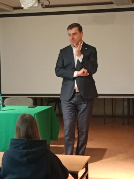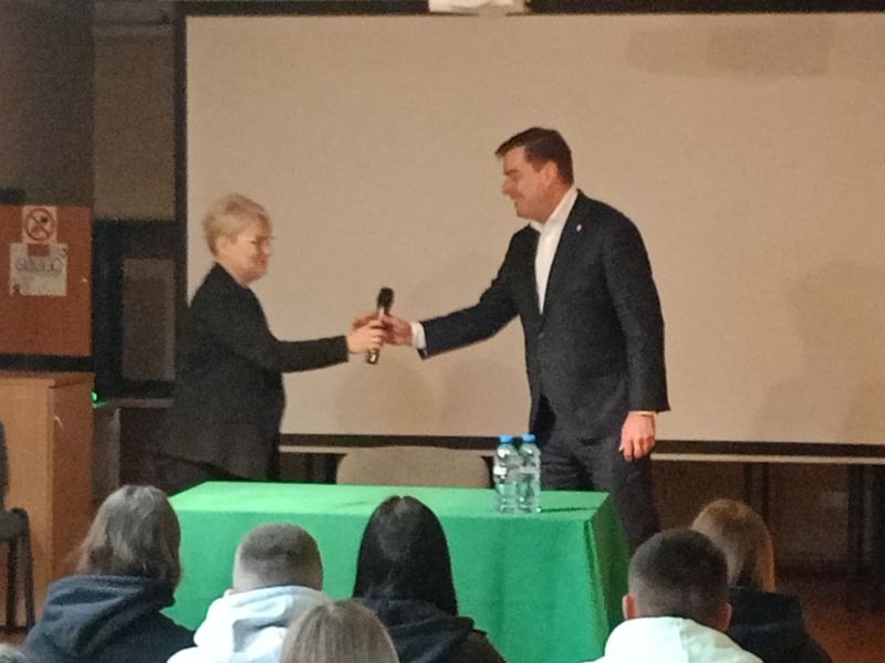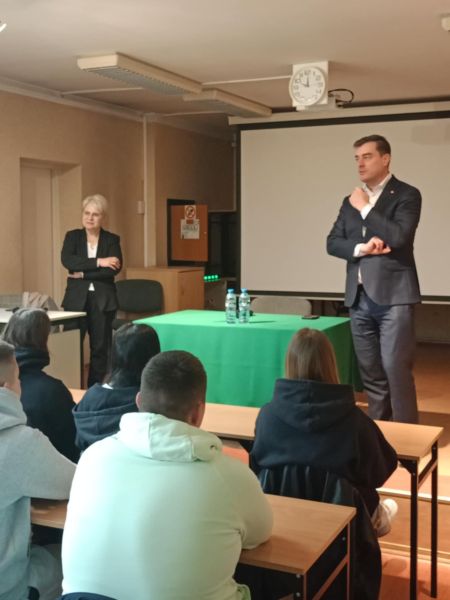 Prezydent Miasta Leszna Grzegorz Rusiecki na spotkaniu z młodzieżą