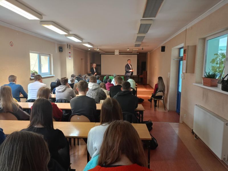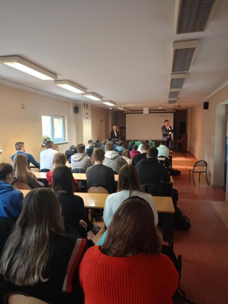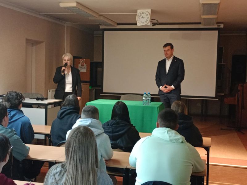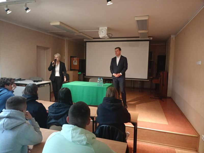Z okazji Dnia Samorządności 16.03. gościliśmy w naszej szkole Prezydenta Miasta Leszna, pana Grzegorza Rusieckiego. Opowiedział on o swojej pracy zawodowej, obowiązkach i karierze. Zapoznał uczniów ze strukturą, kompetencjami i zasadami funkcjonowania samorządu. Opowiedział o realizowanych przez niego zadaniach, w tym również tych z zakresu oświaty. Poruszył temat inwestycji wykonywanych zarówno aktualnie, jak i planowanych w najbliższym czasie. Uczniowie mieli okazję posłuchać o problemach lokalnej społeczności. W trakcie zajęć dowiedzieli się jak działa samorząd, w jakim stopniu realizowane są poszczególne zadania. Młodzież miała możliwość zadania nurtujących ją pytań, które dotyczyły takich kwestii jak oświata, infrastruktura drogowa, sport, na które pan Prezydent szczegółowo odpowiadał. W spotkaniu uczestniczyła pani dyrektor Kamilla Sprengel. Lekcja miała bardzo istotne znaczenia, gdyż pozwoliła poszerzyć wiedzę tak bardzo potrzebną do kształtowania postaw obywatelskich i demokratycznych. Z kolei 23.03. odbył się turniej „Jeden z dziesięciu”. Uczniowie mieli okazję zmierzyć się z pytaniami z takich dziedzin jak literatura, geografia, fizyka, biologia, matematyka, medycyna. Zwyciężyła Antonina Skrzypczak z klasy II ARB. Serdecznie gratulujemy. Dziękujemy Zosi Matysiak i Paulinie Litorowicz za zaangażowanie w przygotowanie konkursu.