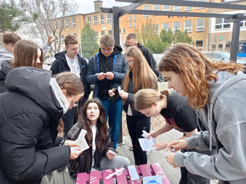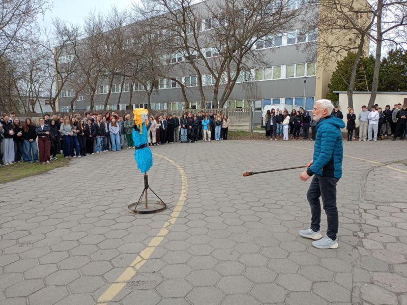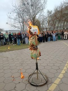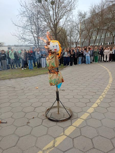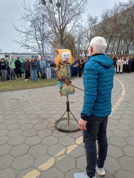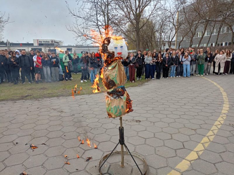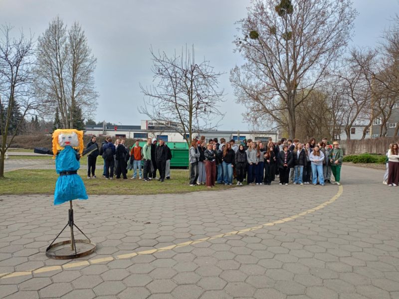 Takimi słowami uczniowie pożegnali zimę. 21 marca to pierwszy dzień kalendarzowej wiosny. To czas budzenia się przyrody do życia. Po długiej zimie z tęsknotą wyczekujemy tego dnia i jest to duży powód do radości dla wszystkich zmęczonych zimnem i wcześnie zapadającym mrokiem. Wszyscy z niecierpliwością czekamy na słońce, kwiaty i ptaki. Samorząd Uczniowski nie zapomniał o nadchodzącej wiośnie i postanowił przygotować krótki apel, na którym przedstawił kilka ciekawostek o wiośnie i związanych z jej nadejściem obrzędów i tradycji. Wcześniej jednak w auli szkolnej odbył się konkurs pod hasłem „Znajdź wiosnę”. W szranki stanęły trzy dziesięcioosobowe drużyny. Paulina Litorowicz i Zosia Matysiak przygotowały zadania, które trzeba było rozwiązać na terenie szkoły. Drużyny musiały wykazać się wiedzą i refleksem. Młodzież odpowiadała na szereg pytań. W ciągu literowym musiała odnaleźć piętnaście słów związanych z wiosną i szkołą, ułożyć motyw związany z nadejściem nowej pory roku, odszukać dziesięć tajemniczych kartek z literami i ułożyć z nich nazwę miejsca do którego należało udać się w najbliższej kolejności. Jednym z zadań było zrobienie zakupów w szkolnym sklepiku – Bambrze i obliczenie łącznego kosztu zakupionych produktów. Zwycięska drużyna otrzymała upominki, które wręczył pan wicedyrektor Bronisław Kaźmierczak. Obchody Pierwszego Dnia Wiosny na stałe wpisały się w kalendarz imprez i uroczystości szkolnych. Była piękna, dostojna Pani Marzanna, którą uroczyście podpalił na placu szkolnym pan dyrektor. Serdecznie dziękujemy Paulinie Litorowicz za trud w wykonanie Marzanny i tym wszystkim, którzy nie zawiedli i przyłączyli się do wspólnej zabawy.