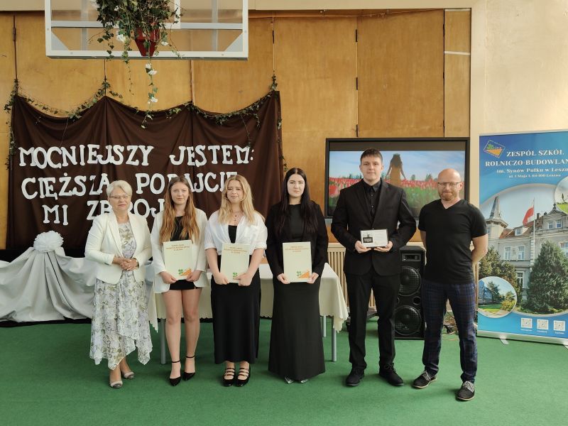 W piątek 25 kwietnia 2025 r. odbyło się uroczyste zakończenie roku szkolnego maturzystów. Podczas uroczystości absolwenci zostali pożegnani przez młodsze koleżanki i kolegów. Ważnym momentem uroczystości było przekazanie sztandaru młodszym rocznikom. W programie artystycznym pojawiły się piosenki, ale także wspomnienia i krótkie charakterystyki każdej z klas, również w nieco humorystycznym wydaniu. Reprezentanci klas piątych podziękowali dyrekcji, wychowawcom i nauczycielom, a wyrazem wdzięczności były wręczone kwiaty. Tradycyjnie absolwenci otrzymali świadectwa ukończenia technikum. Następnie pani dyrektor Kamilla Sprengel podsumowała pobyt naszych maturzystów w szkole, zwracając uwagę na rolę doświadczenia i wiedzy, które zdobyli.