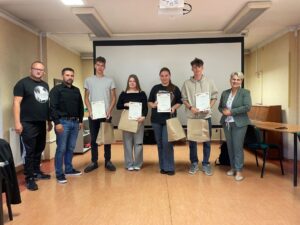 W dniu 16.09.2025 w ramach Europejskiego Tygodnia Eko-Mobilności o godzinie 9:00 Auli szkolnej odbył się konkurs z zakresu Bezpieczeństwa w Ruchu Pieszo-Rowerowym. Konkurs był skierowany do uczniów wszystkich klas naszej szkoły. Organizatorami konkursu byli Jędrzej Grobelny i Piotr Majchrzak. Uczniowie zajmujący pierwsze cztery miejsca otrzymali nagrody ufundowane przez OSK Jędrzej Grobelny i OSK MORS Piotr Majchrzak.