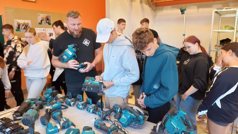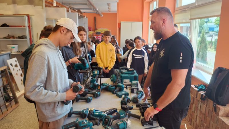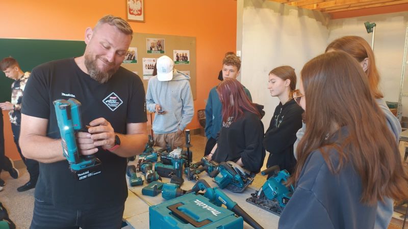W Zespole Szkół Rolniczo-Budowlanych w Lesznie odbyło się specjalistyczne szkolenie prowadzone przez przedstawicieli firmy Makita, znanego na całym świecie producenta elektronarzędzi. Spotkanie miało charakter praktyczno-pokazowy i zostało przygotowane z myślą o uczniach kierunków budowlanych. W szkoleniu uczestniczyły klasy 1TB, 2TARB oraz 3TBA, które na co dzień kształcą się w zawodach związanych z budownictwem i architekturą krajobrazu. Dzięki temu uczniowie mogli zobaczyć z bliska, jak wygląda praca z profesjonalnym sprzętem i jak duże znaczenie ma dobór odpowiednich narzędzi w codziennej pracy. Nie zabrakło również części praktycznej, podczas której uczniowie mogli sami przetestować narzędzia, sprawdzając ich moc, precyzję i wygodę obsługi. To doświadczenie pozwoliło im nie tylko zdobyć wiedzę, ale także przekonać się, jak teoria przekłada się na praktykę. Szkolenie było dla młodzieży doskonałą okazją do kontaktu z najnowszą technologią i bezpośredniego spotkania z profesjonalistami z branży. Takie wydarzenia są niezwykle cenne, ponieważ rozwijają zainteresowania uczniów, motywują do nauki i pomagają w świadomym wyborze przyszłej ścieżki zawodowej. Dziękujemy firmie Makita!