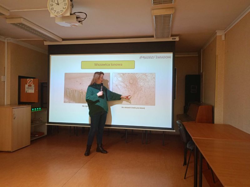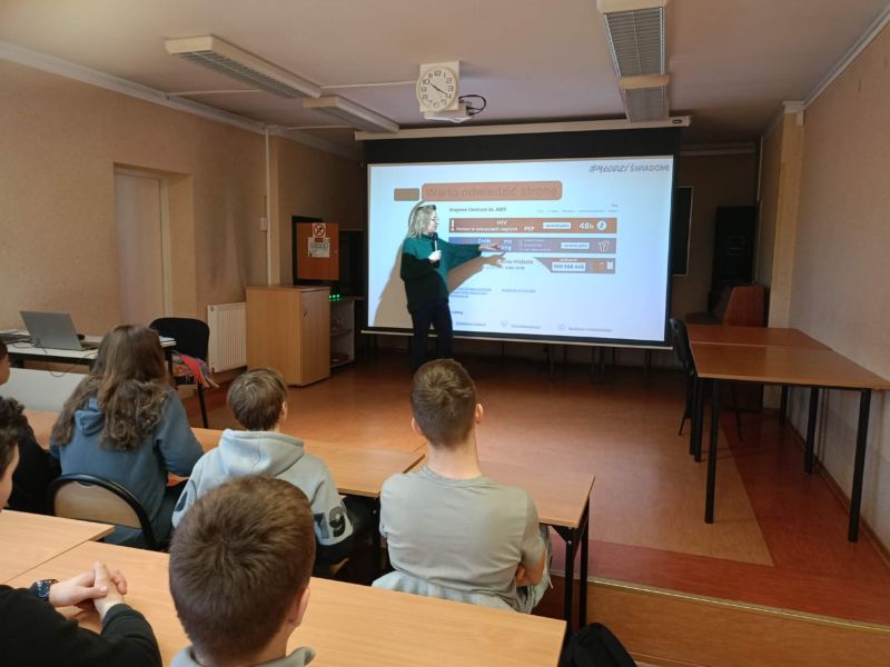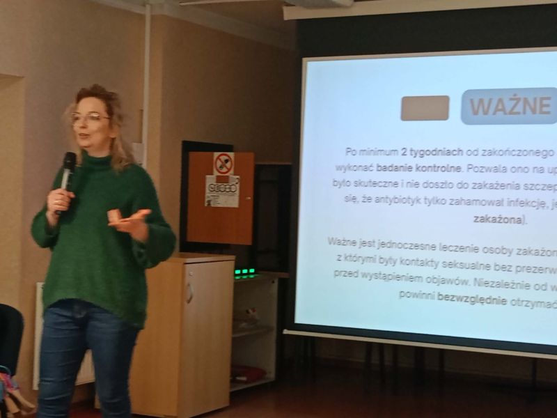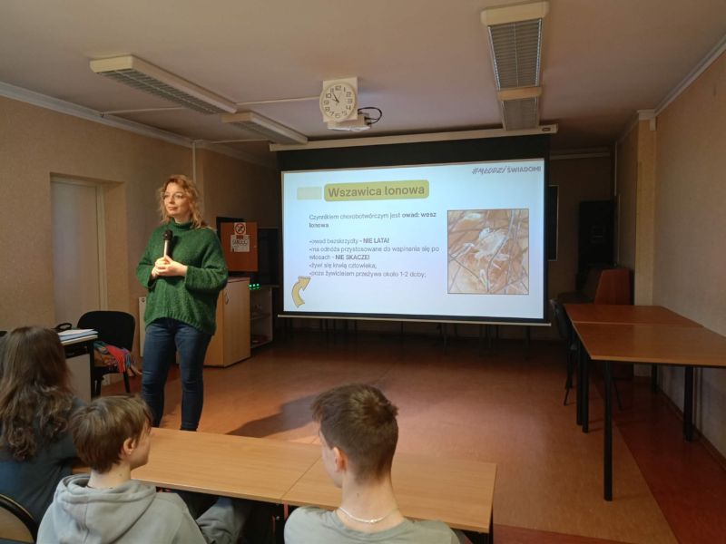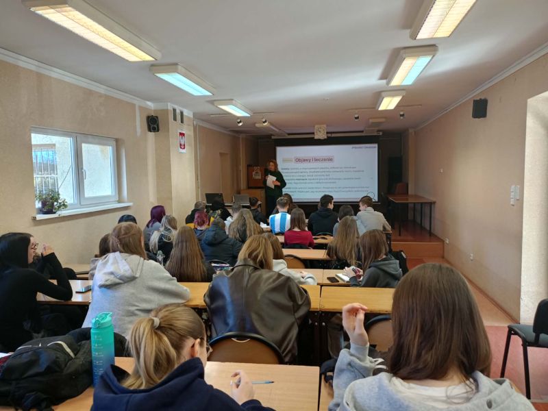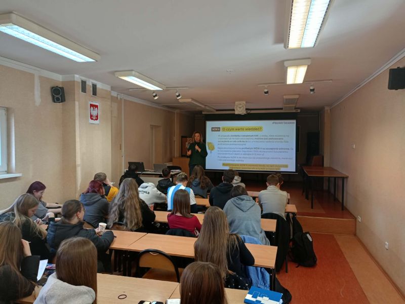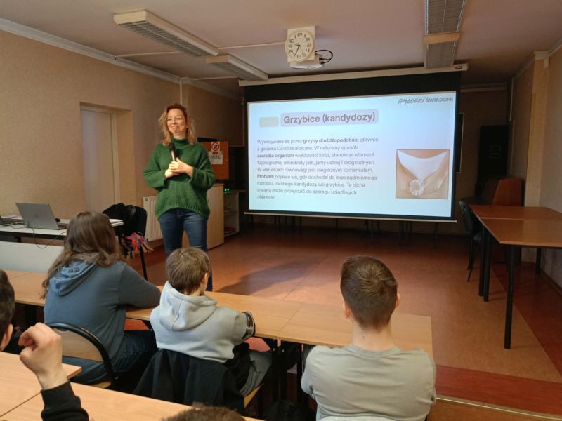 Dnia 08.04.2026 na zaproszenie Samorządu Uczniowskiego gościła pani Anna Ślusarek z Powiatowej Stacji Sanitarno – Epidemiologicznej w Lesznie. Z uczniami klasy I TB i I TŻ zrealizowała projekt o nazwie „Młodzi, świadomi” dotyczący chorób wenerycznych. Opowiedziała w jaki sposób ustrzec się przed tego typu dolegliwościami. W bardzo szczegółowy sposób przybliżyła takie choroby jak: Kiła, która wywoływana jest przez bakterię – krętka bladego i bardzo szybko przedostaje się do naczyń krwionośnych i rozprzestrzenia po całym organizmie. Rzeżączka – bardzo wrażliwa na temperaturę, światło słoneczne i środki dezynfekcyjne. Chlamydioza z kolei jest jedną z najczęściej występujących chorób przenoszonych drogą płciową. Przebycie tej choroby nie pozostawia odporności i nie chroni przed ponownym zakażeniem. Grzybice natomiast wywoływane są przez grzyby drożdżopodobne i w naturalny sposób zasiedlają organizm większości ludzi. Prelegentka zwróciła też uwagę na Rzęsistkowice, która jest jednym z najczęstszych zakażeń układu moczowo – płciowego na świecie. Młodzież miała okazję poszerzyć wiedzę o takie choroby jak: świerzb, owsica, HIV, HPV, opryszczka i wiele innych. Uczniowie dowiedzieli się o drogach zakażenia tychże chorób i ich objawach, a także sposobach leczenia. Pracowali w grupach, wypełniali ankiety i brali udział w dyskusji. Wykład okazał się bardzo wartościowy.