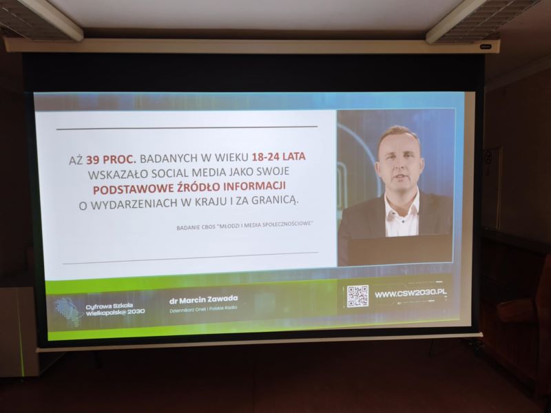 Dziś w ramach realizacji projektu Cyfrowa Szkoł@ Wielkopolska 2030 uczniowie klasy V TBW wzięli udział w wykładzie online: Social media – świat wykreowany czy realny? Prowadzonym przez dra Marcina Zawadę.(ONET) Wykład poświęcony był social mediom, jako źródłu informacji/dezinformacji. Wszystkie badania potwierdzają, że TikTok, Facebook oraz portal X stają się coraz częstszym (niejednokrotnie i jedynym) źródłem pozyskiwania informacji o świecie – szczególnie wśród ludzi młodych. Podczas wykładu zaprezentowane zostały konkretne przykłady fake newsów i ich skutki społeczno-polityczne, co pozwoli odbiorcom lepiej zrozumieć mechanizmy działania i motywacje autorów takich treści. Omówione zostały również zachowania pozwalające na obronę przed fake newsami i szybkie weryfikowanie informacji.