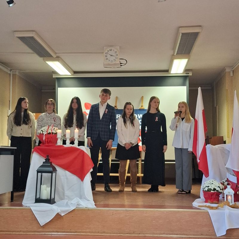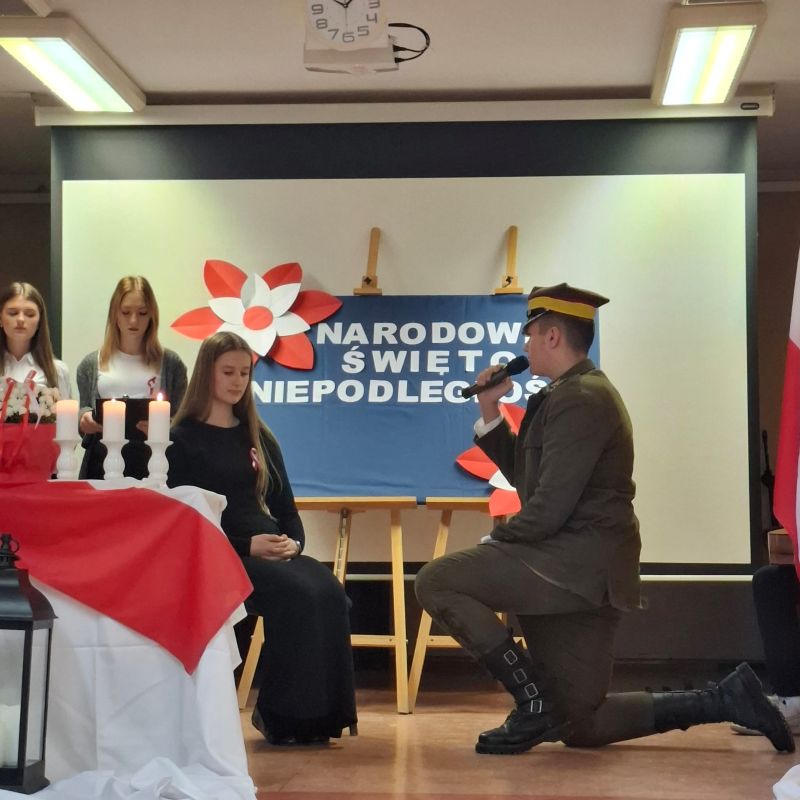 Narodowe Święto Niepodległości uczciliśmy uroczystym apelem, który ukazywał drogę do odzyskania suwerenności. Patriotyczne pieśni, liryczne opowieści o odwadze i patriotyzmie przypomniały nam, że 11 listopada to najważniejszy dzień w historii naszego kraju. Zgodnie z założeniami akcji „Szkoła do hymnu” społeczność szkolna o symbolicznej godzinie 11:11 wspólnie odśpiewała „Mazurka Dąbrowskiego”.