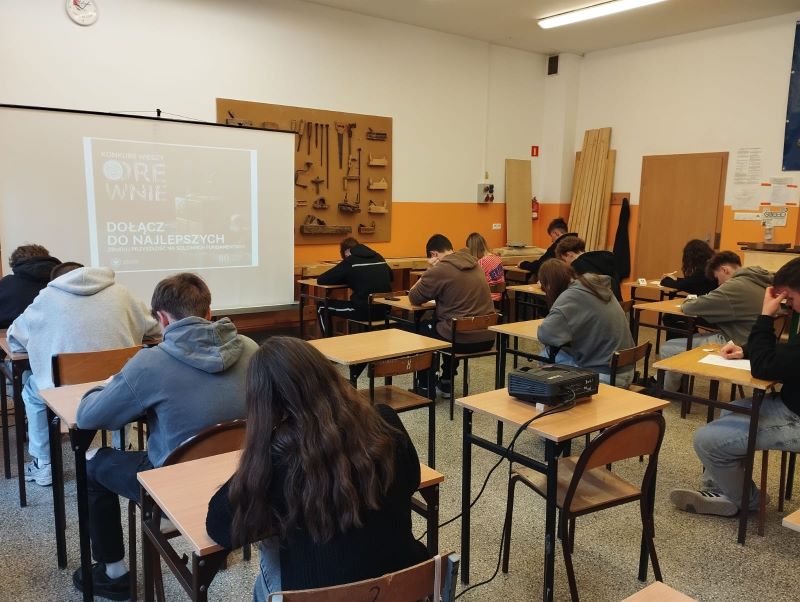 W dniu 14 kwietnia 2026 roku odbył się pierwszy etap Konkursu Wiedzy o Drewnie, w którym udział wzięli uczniowie kształcący się w zawodach technik technologii drewna oraz technik budownictwa. Głównym organizatorem wydarzenia jest Wydział Technologii Drewna Szkoły Głównej Gospodarstwa Wiejskiego w Warszawie. Najlepszy wynik w pierwszym etapie osiągnął Jakub Thiel z klasy 3TDO. Informacja o liczbie uczniów z poszczególnych szkół zakwalifikowanych do drugiego etapu zostanie ogłoszona w maju. Serdecznie gratulujemy i trzymamy kciuki za dalsze sukcesy naszego przyszłego technologa drewna!