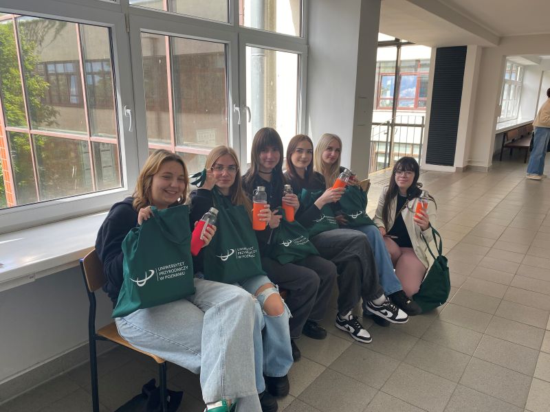 Dnia 23 maja 2025r. miała miejsce kolejna w tym roku szkolnym , wycieczka dydaktyczna kl. 2TBA grupa analityków i uczniów kl.4 TŻiUG na Uniwersytet Przyrodniczy w Poznaniu pod opieką pani Jadwigi Barczyńskiej i pani Arlety Prałat- Szpurek. Uczniowie uczestniczyli w projekcie „Popularyzacja nauki w ramach Uniwersytetu Młodych Przyrodników-2.0”. Młodzież została podzielona na 2 grupy i uczestniczyła w wyznaczonych zajęciach. Na zajęciach zaprezentowano pokaz związany z degustacją i analizą sensoryczną. Prowadząca mówiła o ocenie sensorycznej produktów z zachowaniem odpowiednich warunków oceny między innymi pomieszczenia i odpowiedniego oświetlenia. Kolejne zagadnienie to krótki wykład z praktycznymi ćwiczeniami na temat „ Antropometria – nauka zajmująca się pomiarami ciała ludzkiego jako narzędzie w pracy dietetyka”. Najwięcej jednak emocji dostarczyły uczniom wykłady na temat „ Mięso hodowane komórkowo” oraz „Owady na talerzu, przyszłość żywienia czy chwilowa moda”. Młodzież z dużym zainteresowaniem słuchała przekazywanych treści a także aktywnie uczestniczyła w zajęciach. Odpowiadała w trakcie wykładów na pytania prowadzących np. na zadane pytanie po zeskanowaniu kodu Q R z prezentacji , jakie mają skojarzenia z hodowlą mięsa komórkowo , pisali laboratorium, strzykawka rozmnażanie co oczywiście było zgodne. W prezentacji został przedstawiony schemat produkcji takiego mięsa. Ostatni wykład to owady na talerzu. Owady, które są dopuszczone do produkcji żywności w Unii Europejskiej to szarańcza wędrowna, mącznik młynarek, świerszcz domowy, mącznik drobny. Wykorzystanie owadów – mają bardzo wysoką wartość odżywczą, np. 2 razy więcej białka, 30 razy więcej witaminy B12, 3 razy więcej żelaza niż w wołowinie, więcej wapnia niż w mleku. Mięso hodowane komórkowo i owady jako źródło pożywienia są coraz częściej proponowane jako alternatywy dla tradycyjnego mięsa. Na zakończenie niektórzy uczniowie degustowali suszone świerszcze. Program zajęć był niezwykle interesujący, ale przede wszystkim cenny pod względem edukacyjnym – pozwolił naszym uczniom poszerzyć wiedzę. Zajęcia przebiegały w życzliwej i przyjaznej atmosferze. Uczniowie otrzymali także drobne gadżety.